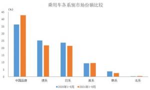2021年1—8月,中國品牌乘用車累計銷售561.2萬輛,同比增長36.7%,占乘用車總銷量的42.8%,市場份額較去年同期提升6.5個百分點。